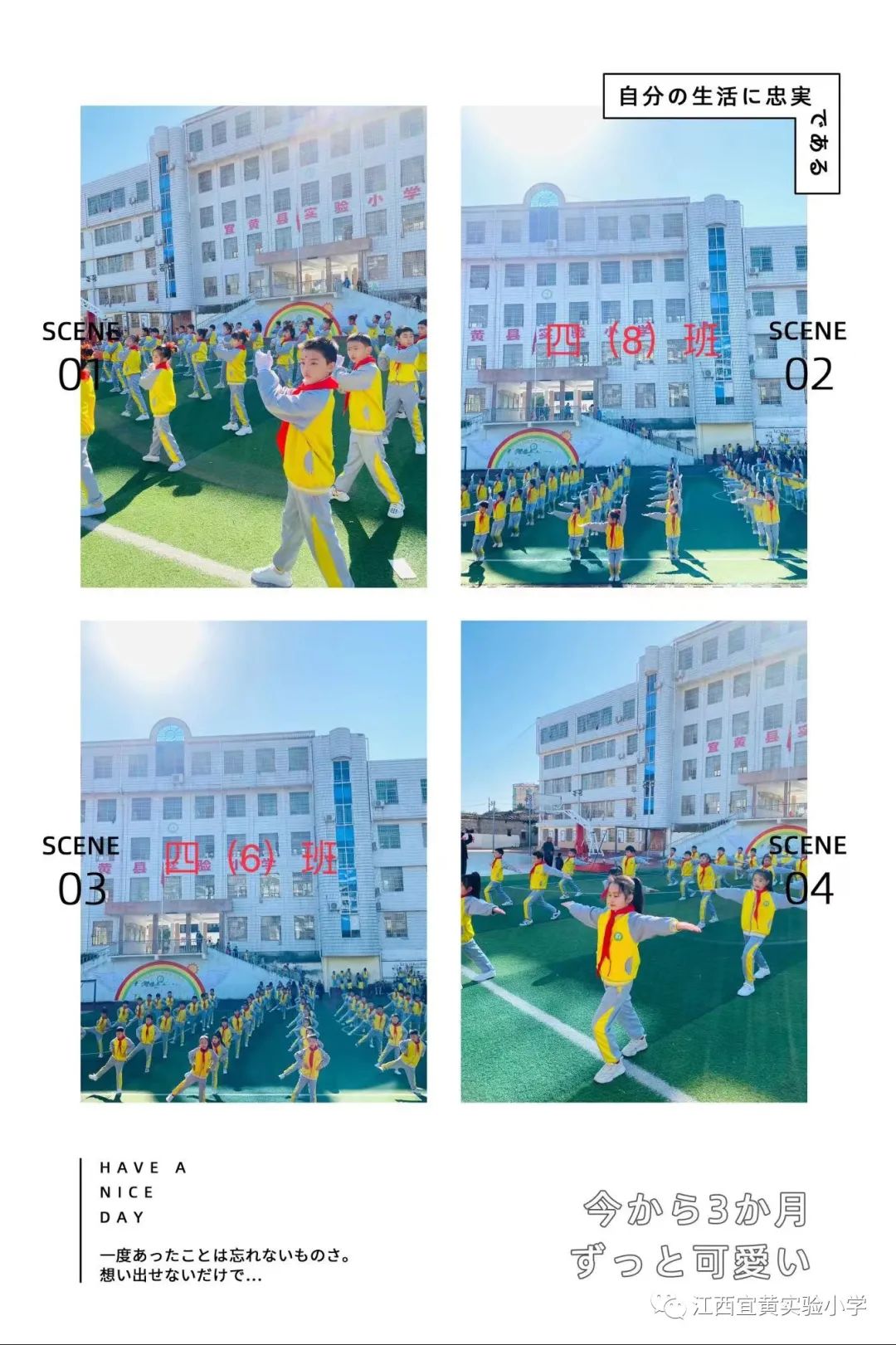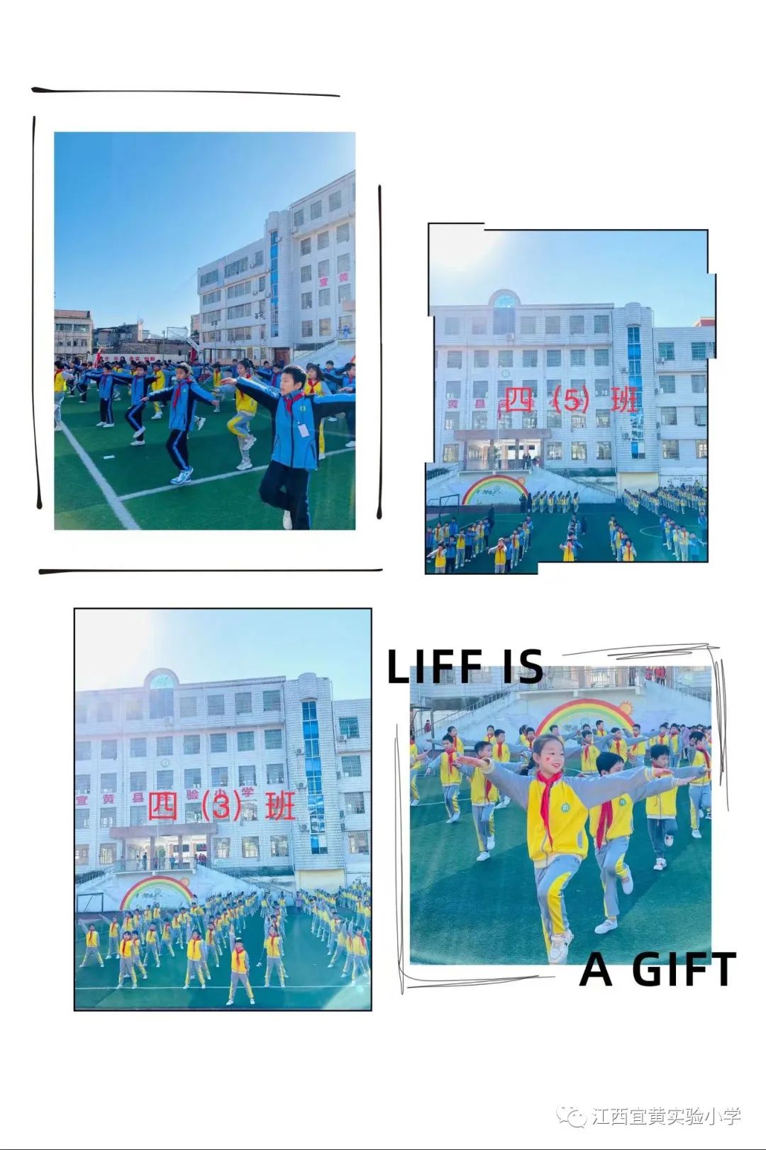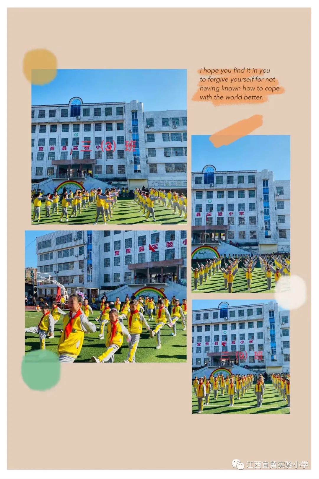 争先夺冠,勿忘平时点滴功夫,强身健体,切记朝夕宝贵时间,希望全体同学能以本次广播体操比赛活动为契机,积极参加体育运动,为祖国,为亲人,为快乐人生拥有一个健康体魄,让“大课间活动和阳光体育”成为实小的一道靓丽风景线!