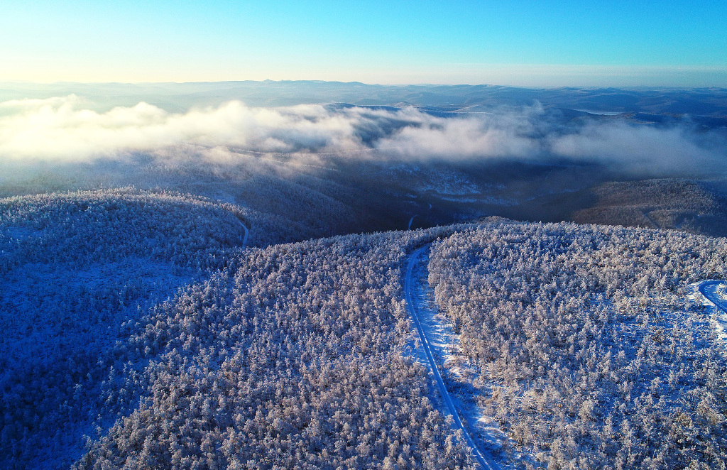 近日,内蒙古呼伦贝尔大兴安岭林区莫尔道嘎出现百里雾凇景观,置身其中,仿佛进入童话般的世界。