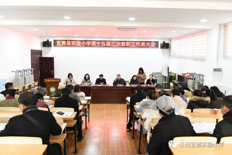为了进一步规范学校管理工作,调动教职工的积极性和创造力,充分发挥教职工民主参与、民主管理和民主监督的积极作用,聚力评估、集思广益、共谋发展,宜黄县实验小学于2021年12月4日在学校多媒体教室召开了第十五届三次教职工代表大会。